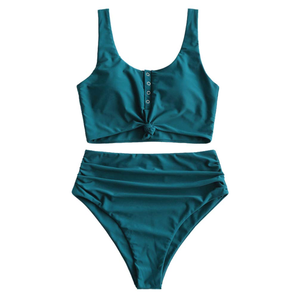 Be the first to review “Women’s Scoop Neck Knotted High Waisted Two Piece Tankini Set Swimsuit”